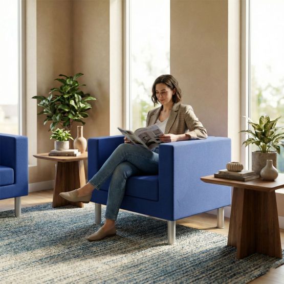 “Harmonie classique, formes droites et superbe confort pour ce canapé de standing à prix doux. OXEL par son élégance indémodable, habille tous les espaces d’attente, de la réception « smart » au bureau de Direction. Cuir ou tissu, personnalisez ses couleurs et textures selon vos goûts. Coussins d’assise déhoussables. Tables basses assorties, carrée ou rectangulaire, avec plateau en verre feuilleté satiné.”