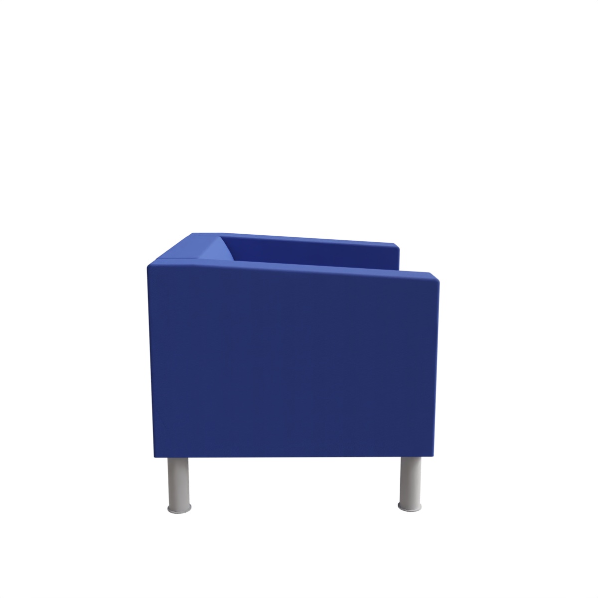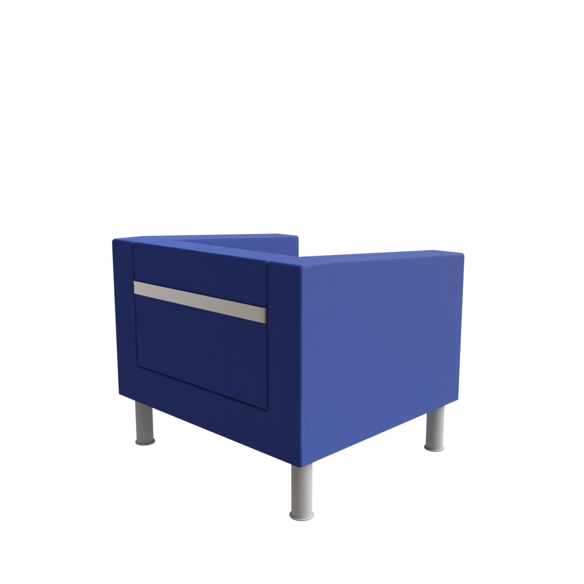 Chauffeuse de standing modulaire 1 place avec accotoirs, pieds en époxy aluminium sur patins réglables permettant de compenser les inégalités du sol. Finition cuir noir (exclusivement) pour les parties en contact avec l’utilisateur, napel noir pour l’arrière dossier et les latéraux. Lignes droites, design sobre et intemporel. Possibilité de nettoyage ou remplacement aisé des coussins de tapisserie. Existe aussi en canapé 2 et 3 places.
