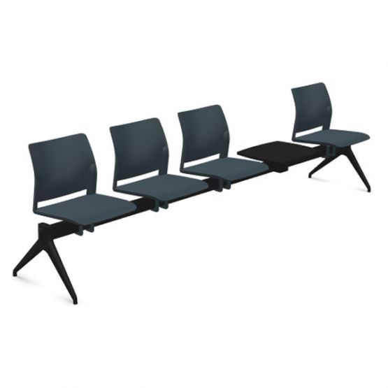 Programme fonctionnel et compétitif de sièges sur poutres décliné en 4 versions de 2 à 5 places avec ou sans tablette intermédiaire (plateau 500 x 450 mélaminé anthracite):