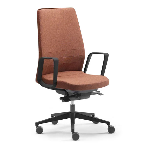 La structure du fauteuil est solide et durable. Le dossier et la têtière sont composés d'un cadre métallique en tube d'acier avec une traverse en acier, tandis que l'assise est fabriquée en bois moulé. Un mécanisme synchrone "Plus" permet un grand angle d'inclinaison du dossier et de l'assise, avec une tension personnalisable pour un confort sur mesure. La translation d'assise offre une parfaite adaptation à tous les gabarits.