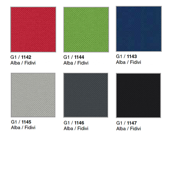 Coque inférieure de l’assise en polypropylène. Rembourrage en mousse PU injectée à froid, rg env. 62 g/mÑ, dureté 6,8 kPa. Tissus correspondants à la collection Viasit. Tests au feu: fmvss 302, nfp 92-501 bis nfp 92-507.