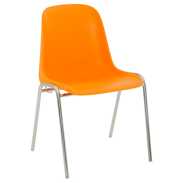 Chaise coque empilable, accrochable. Coque en polypropylène. Piétement chromé diamètre 20 mm