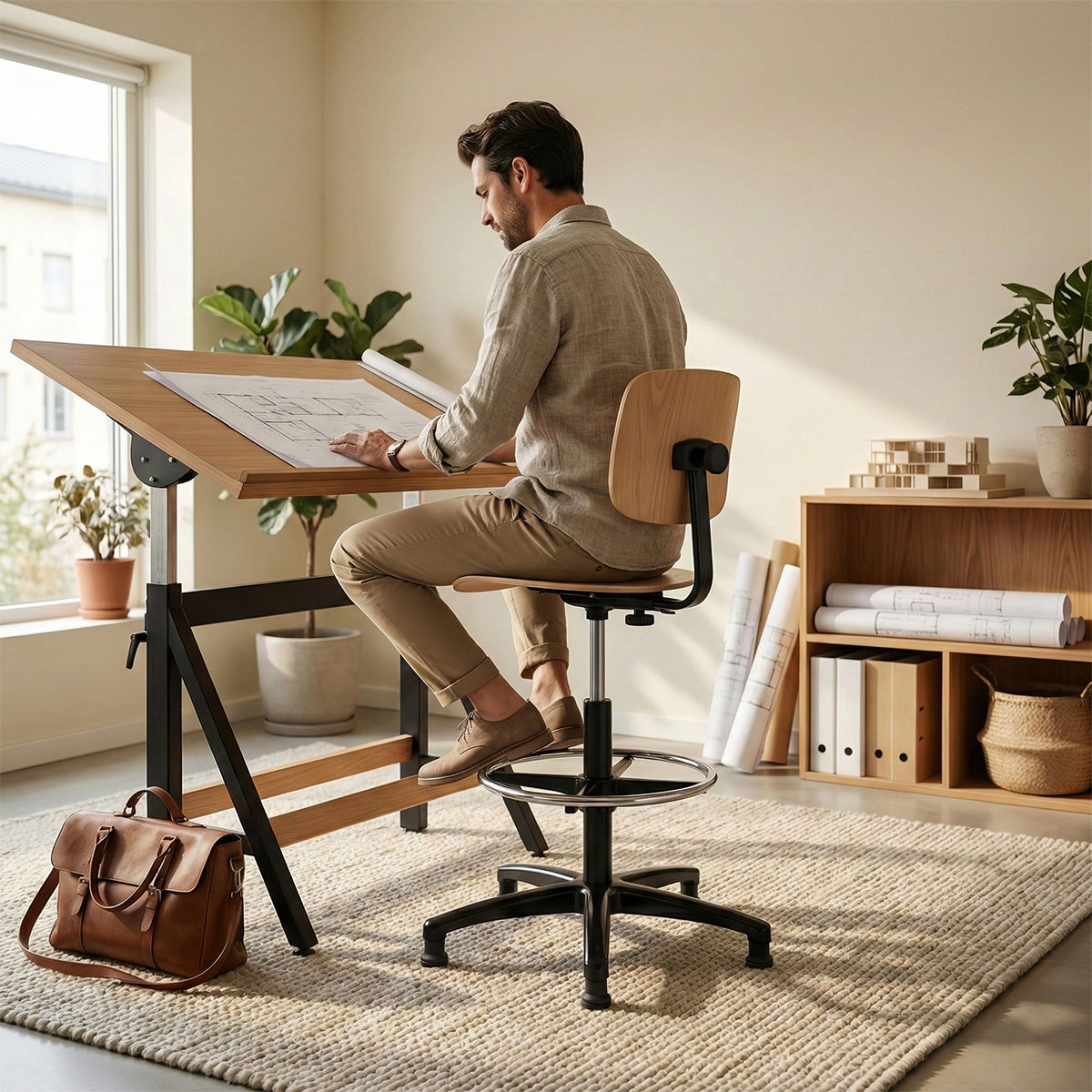 Pour les dessinateurs industriels ou les architectes travaillant sur des planches à dessin ou des tables hautes, le confort postural est primordial pour éviter les troubles musculo-squelettiques (TMS). Le Sokoa Tecnik TB2000 est équipé d'un dossier confort monté sur lame d'acier souple, réglable en hauteur et en profondeur, épousant parfaitement la courbe du dos pendant les longues sessions de conception.