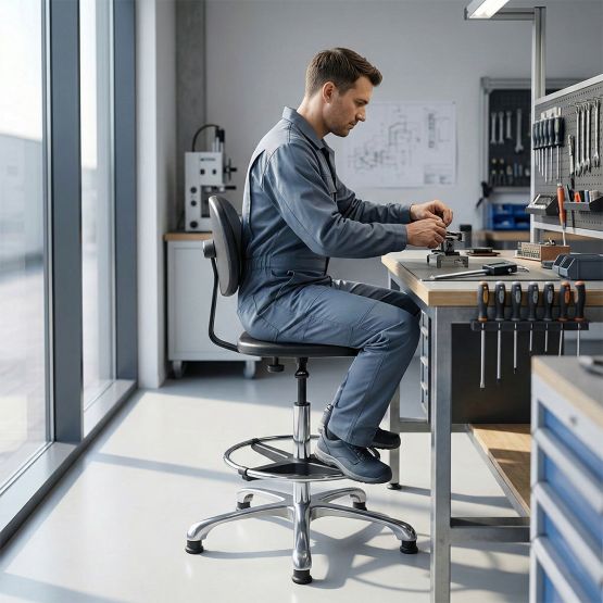 Adopter une bonne posture est essentiel pour prévenir les troubles musculo-squelettiques (TMS) en atelier. Le siège CLPU-H intègre de multiples réglages pour s'adapter à chaque morphologie :