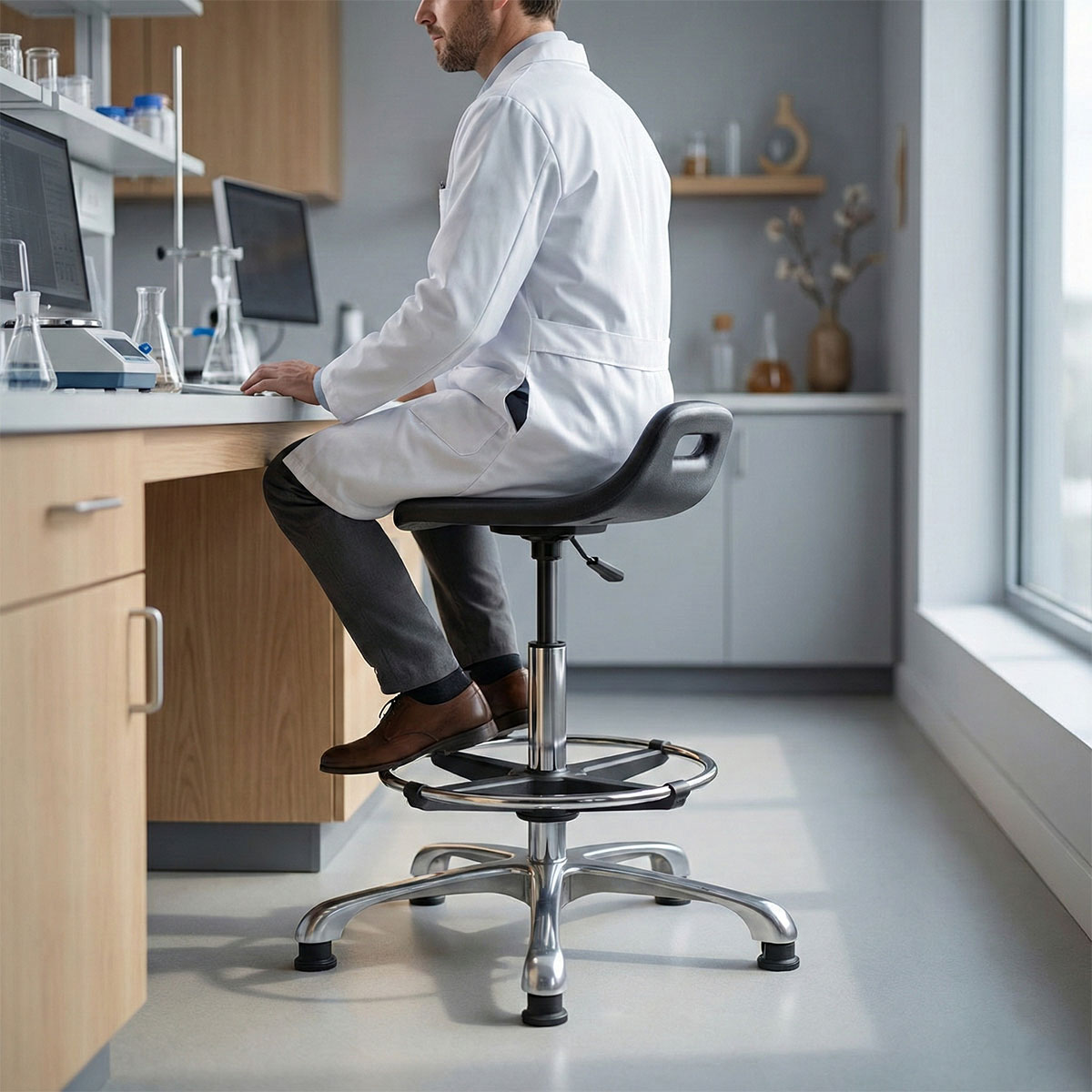 Travailler sur une paillasse, une table à dessin ou une chaîne de montage exige une posture parfaitement adaptée pour prévenir les troubles musculosquelettiques (TMS).