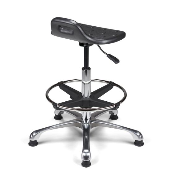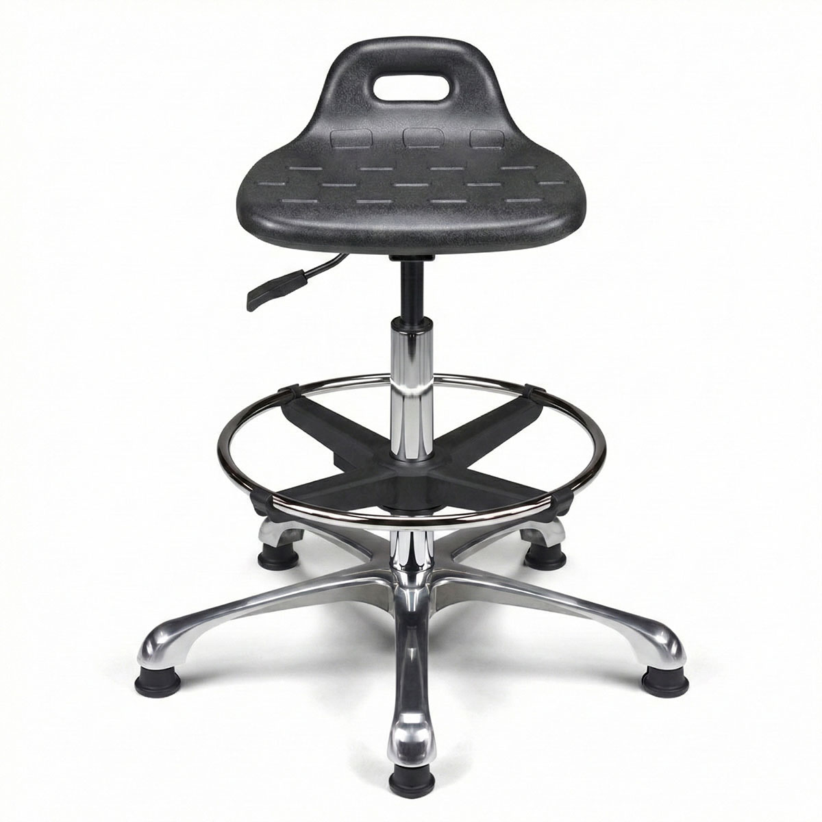 Dans les environnements industriels ou médicaux, le mobilier est mis à rude épreuve. Ce siège technique est équipé d'une assise et d'un dossier fabriqués en polyuréthane noir haute densité. Ce matériau ultra-résistant est particulièrement apprécié pour sa facilité de nettoyage et sa résistance aux chocs, garantissant une hygiène irréprochable et une longue durée de vie à votre équipement.