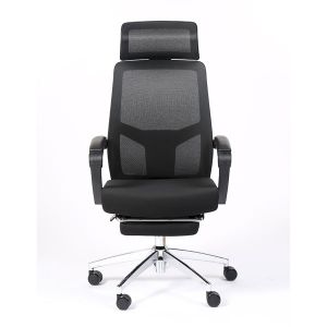 Fauteuil de bureau haut dossier en résille avec têtière intégrée et accoudoirs 3D. Le fauteuil est équipé d'un mécanisme synchrone.