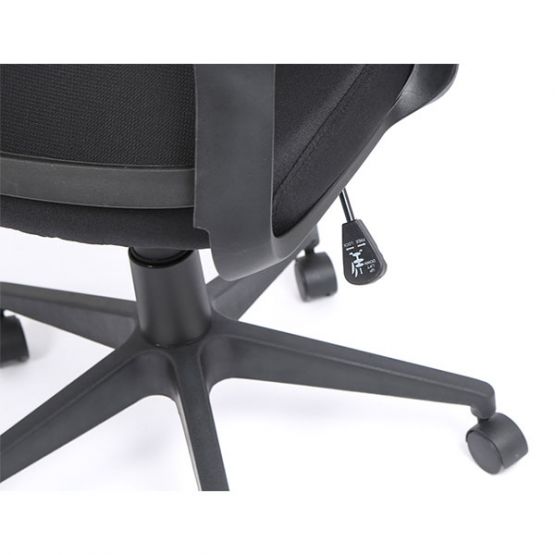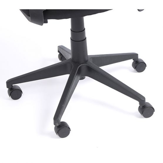 Sa structure repose sur un piétement en nylon noir robuste de 640 mm de diamètre, équipé de roulettes de 5 cm adaptées aux sols souples pour une mobilité fluide et silencieuse.