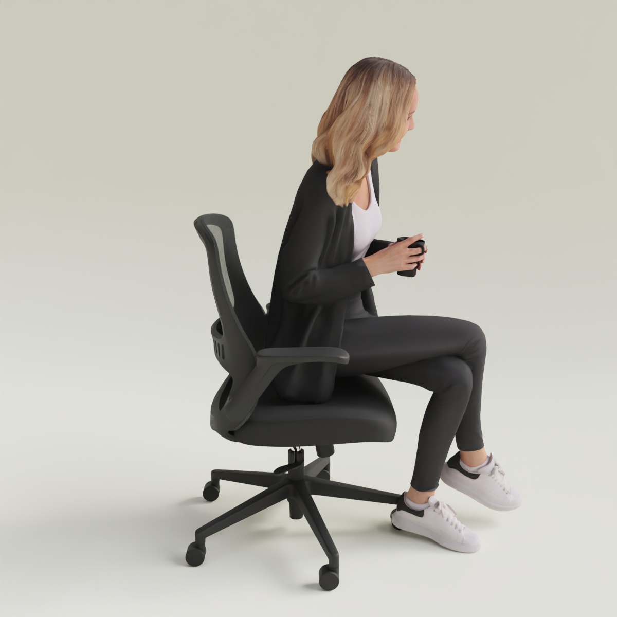 Dossier : Il possède un dossier en filet noir (Mesh) sur un support en polyamide, offrant une bonne respirabilité.