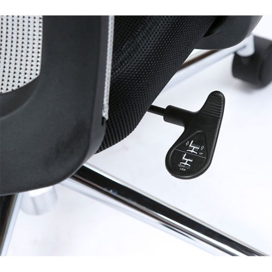 Le dossier en maille 100% polyester offre une respirabilité exceptionnelle, tandis que le soutien lombaire réglable en hauteur garantit un appui précis et ferme au creux du dos, quelle que soit votre taille.