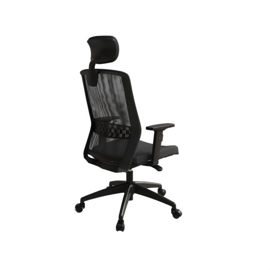 Dans cette version, le Scott est un siège de bureau ergonomique avec têtière. L’appui-tête est tapissé en noir et réglable en hauteur. L’assise d’une densité de 30 kg/m3 est disponible dans un tissu noir, gris ou bleu. Le fauteuil est équipé d’un mécanisme synchrone blocable 4 points, de plus, avec un renfort lombaire réglable en hauteur, le fauteuil peut être utilisé 8 heures par jour en télétravail ou en entreprise. Avec des accoudoirs 2D réglables en hauteur avec manchette réglable en profondeur le fauteuil s’adapte parfaitement à la position de vos coudes.