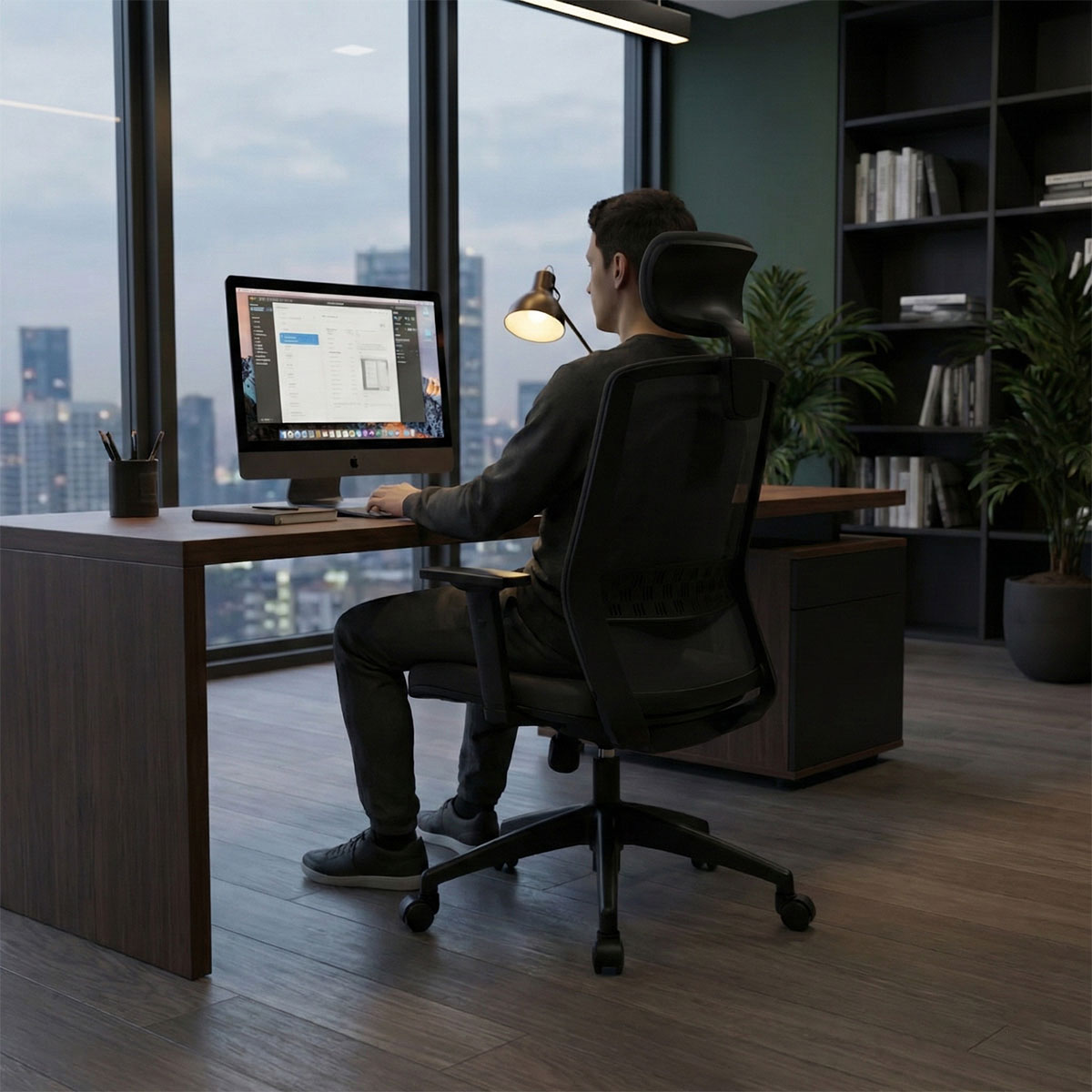 Dans cette version, le Scott est un siège de bureau ergonomique avec têtière. L’appui-tête est tapissé en noir et réglable en hauteur. L’assise d’une densité de 30 kg/m3 est disponible dans un tissu noir, gris ou bleu. Le fauteuil est équipé d’un mécanisme synchrone blocable 4 points, de plus, avec un renfort lombaire réglable en hauteur, le fauteuil peut être utilisé 8 heures par jour en télétravail ou en entreprise. Avec des accoudoirs 2D réglables en hauteur avec manchette réglable en profondeur le fauteuil s’adapte parfaitement à la position de vos coudes.