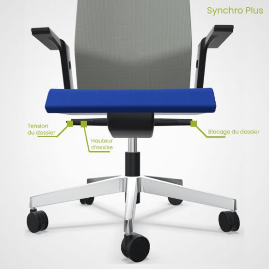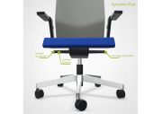 Inspiré des plis d'un ruban, la pièce qui relie l'assise au dossier est un marqueur du design du fauteuil Eman. Elle assure une liaison architecturale entre la partie haute et la partie basse du siège tout en dissimulant avec subtilité le mécanisme de réglage en hauteur du dossier. L'assise du fauteuil est également dotée d'une rainure périphérique astucieuse qui intègre le bouton de réglage de la translation d'assise, offrant ainsi un équilibre parfait et un grand confort.