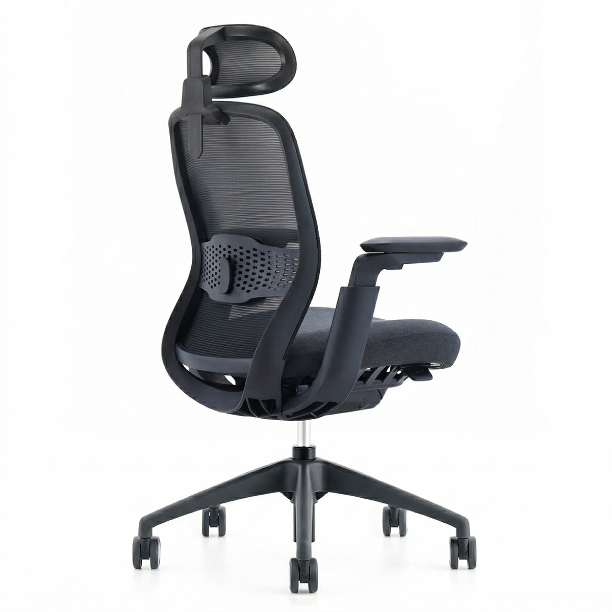 Base et Mobilité : Le fauteuil repose sur une solide base en nylon d'un diamètre de 700 mm. Il est monté sur des roulettes de 60 mm de diamètre avec un bandage souple en polyuréthane (PU), idéal pour les sols durs.