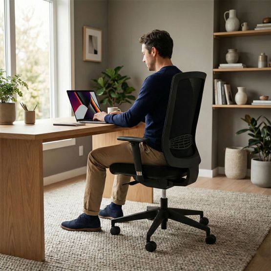 La chaise de bureau Yvan est un fauteuil équipé d'un mécanisme synchrone, avec un lift à double cône classe 4, un pied en nylon, une translation d'assise et un soutien lombaire. La structure est en nylon chargé de fibres de verre, l'assise et le dossier sont rembourrés avec de la mousse de polyuréthane sans CFC. Le mécanisme est blocable à 5 positions avec un système anti-retour, réglable en intensité et en profondeur. La chaise est recommandée pour un usage opératif ou polyvalent et est disponible en plusieurs couleurs. Elle a une garantie de 3 ans sous des conditions d'utilisation normale. Des accoudoirs réglables en hauteur peuvent être ajoutés en option.
